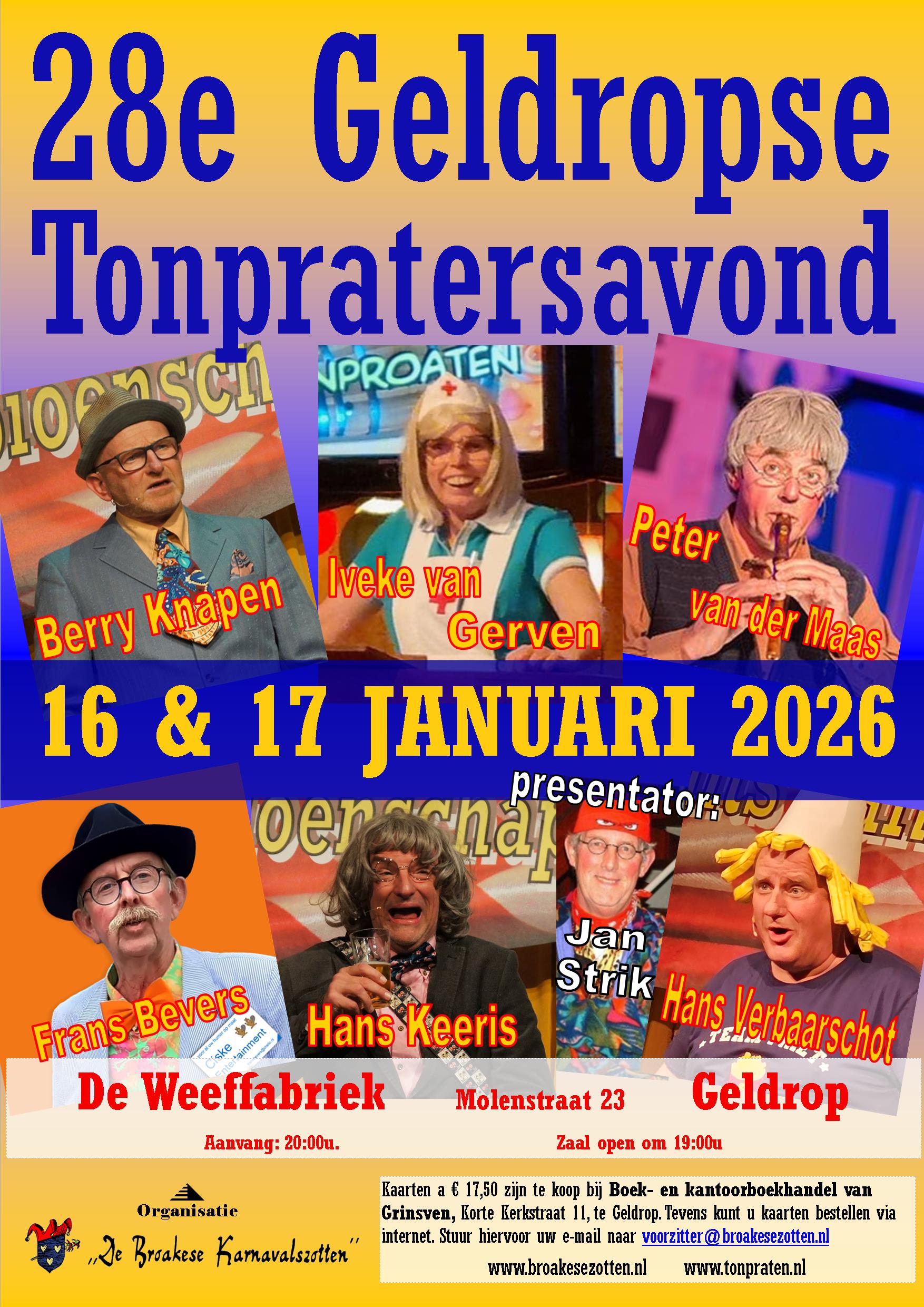 Beide avonden worden gehouden in De Weeffabriek, Molenstraat 23 te Geldrop.